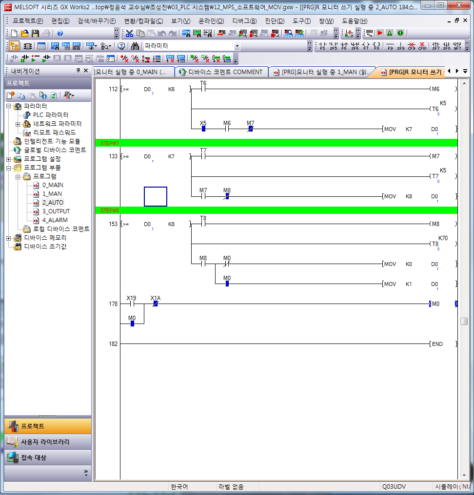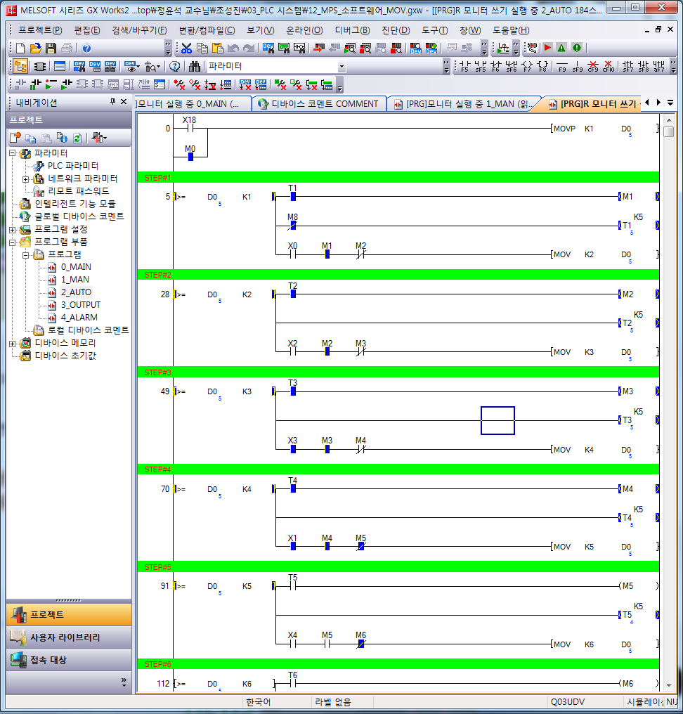 엑셀로 표를 작성하고 GX WORKS 를 이용해 MOV으로 설계를 진행한다.